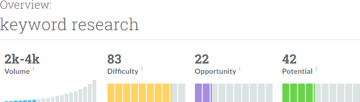 ما می خواهیم با انتخاب کلمه کلیدی به رتبه یک برسیم که حجم زیادی از ترافیک به سمت سایت ما بیاید. کلمات کلیدی که حجم جستجوی بالایی دارند، اغلب رقابتی هستند یعنی برای رقابت به زمان یا پول بیشتری نیاز دارند. PA) Page Authority)فقط اعتبار یک صفحه (URL) را نشان می دهد. این مشخصه، مانند پیج رنک گوگل، برای صفحه نخست سایت، مقدار بیشتری دارد و عددی بین صفر تا صد است که هرچه بالاتر باشد، بهتر است و نشان دهنده ی اعتبار و قدرت بیشتر در موتورهای جستجو از جمله گوگل است. ارتقای این عدد به صورت تصاعدی سخت می شود. (Domain Authority(DA قدرت دامین یک مقدار متریک است که الگوریتم محاسبش را سایت moz.com تعیین کرده است و عملکرد این فاکتور شبیه به پیج رنک سایت گوگل در نتایج جستجوی موتورهای جستجوگر است. این فاکتور براساس دادههایی از Mozscape ایندکس و از دادههایی مثل تعداد بک لینک ، MozRank، MozTrustو دهها فاکتور دیگر تعیین میشود.Keyword Difficulty برای رقابتی بودن کلمه کلیدی است که می توان از ابزار SEOmoz Keyword Difficulty Tools به این منظور استفاده کرد. این ابزار کلیدواژه هارا تحلیل کرده و سختی آن ها را برای رتبه گیری در موتورهای جستجو بر اساس قدرت صفحات وب سایت های لیست شده در نتایج جستجو مورد بررسی قرار می دهد.