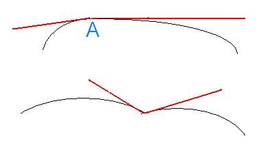 و اما نکته‌ای درباره شکل حروف با کمک منحنی های بزیه Bezier. اگر نگاهی به هندسه دبیرستان داشته باشید خواهید دید که بر یک منحنی در هر نقطه می‌توان یک «مُـماس» رسم کرد. این مماسها در نرم افزارهای طراحی فونت کارکنترل و تغییر شکل منحنی را برعهده دارند. اگر می‌خواهید شکل حروف پاکیزه و منظم باشند ، باید از ایجاد برآمدگیهای ناموزون جلوگیری کنید. دو منحنی زیر را با هم مقایسه کنید. اولی از دو منحنی دیگر تشکیل شده که چون مماسها تقریباً در یک راستا هستند به شکل یک منحنی دیده می شوند، درحالیکه در منحنی پایینی با هم زاویه دارند و شکل را ناهموار نمایش می دهند.